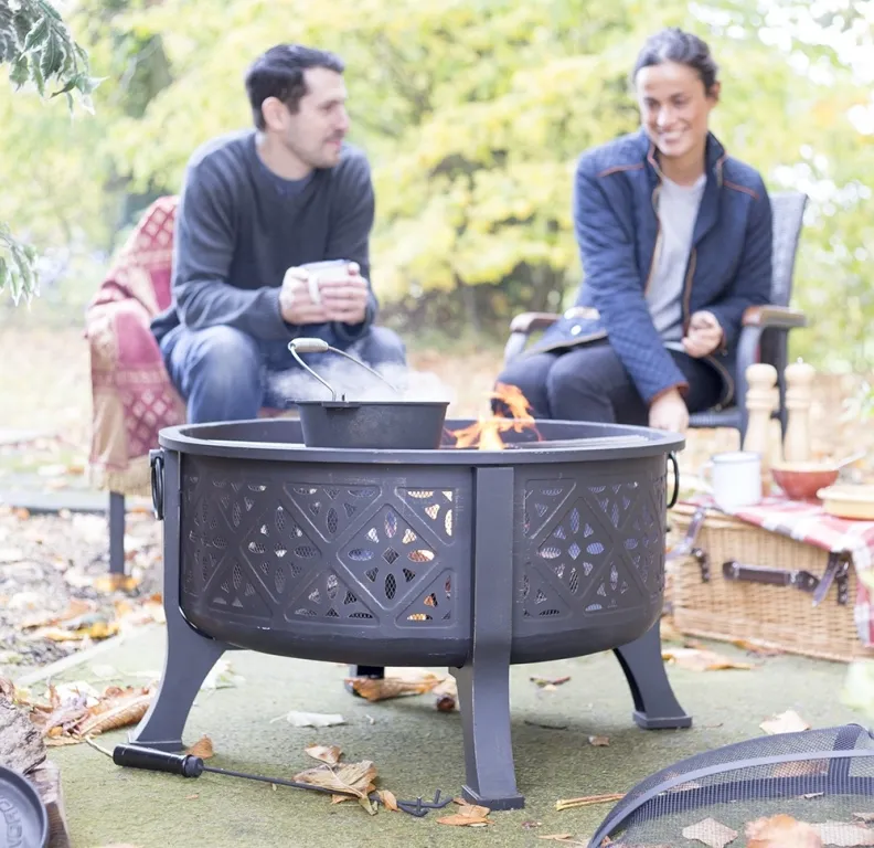 1. LA HACIENDA MORESQUE - глубокая стальная чаша имеет необычный сложный узор по всей поверхности в марокканском стиле. Гриль решетка поставляется в комплекте, если захочется использовать чашу не только для обогрева, но и для приготовления закусок на костре. Диаметр чаши 76 см.