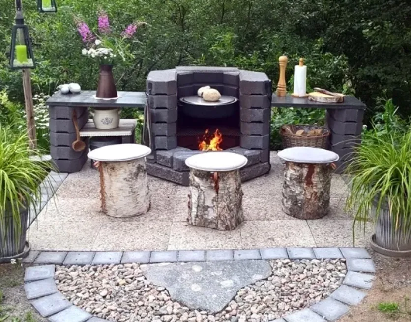 Составной костровой очаг из профилированных блоков.