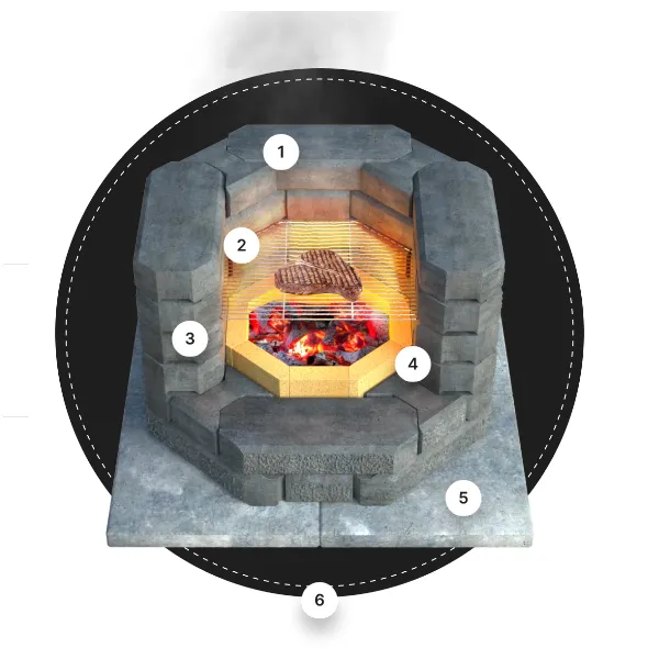 *Огнеупорный шамотный кирпич выкладывается в нижней части конструкции, защищает её от повышенных температур и продлевает срок службы изделия. Плита-основание позволяет легко собрать костровый очаг даже на недостаточно ровной поверхности.
