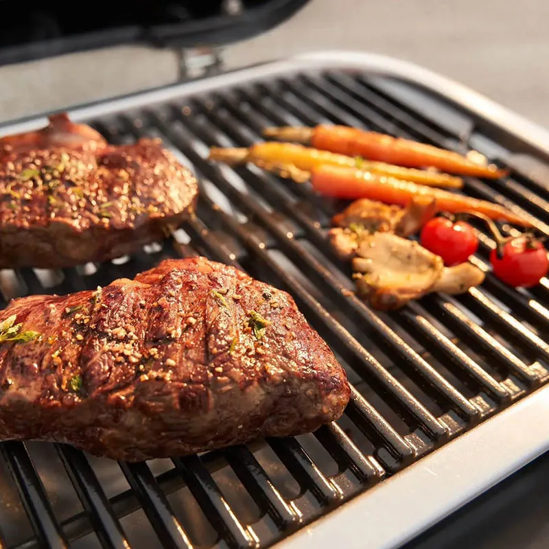 Несмотря на компактные размеры, этот гриль разогревается свыше 600°F (315°C), что позволяет добиваться чётких прожаренных полосок на стейках, рыбе и овощах — как в лучших ресторанах. Благодаря функции ароматизации блюда приобретают тот самый неповторимый «вкус с дымком», который так любят гости.