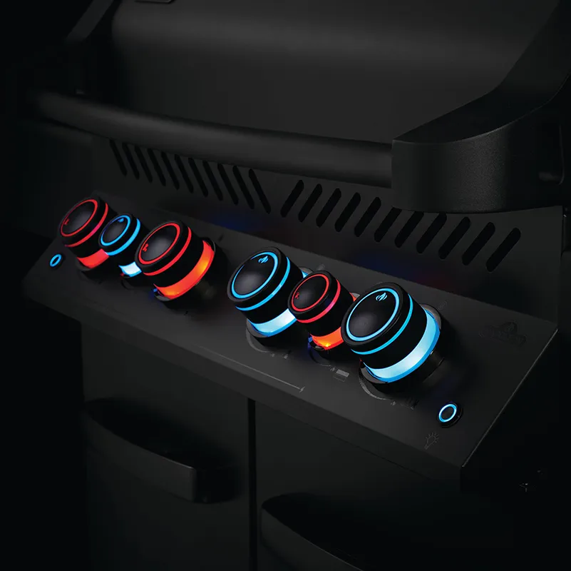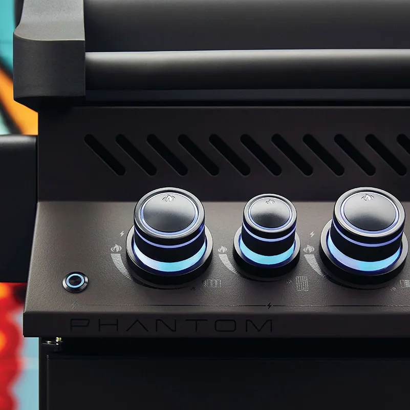 Глубокий матовый чёрный цвет, стильная подсветка ручек управления горелками с функцией Safety Glow™, барбекю-решетки из литой нержавеющей стали ICONIC WAVE™, досконально продуманная система распределения жара, инфракрасная горелка для суперстейков и задняя горелка для вертела - это премиальный функционал для гриллинга от Napoleon. На Phantom 500 Вы можете готовить как минимум восемью разными способами. Одновременно на нём можно приготовить до 30 бургеров на основных горелках, а также до 8 – на боковой. Napoleon Phantom 500 спроектирован таким образом, что гриль превращается в настоящую конвекционную печь. Это достигается благодаря правильной циркуляции жара внутри него.