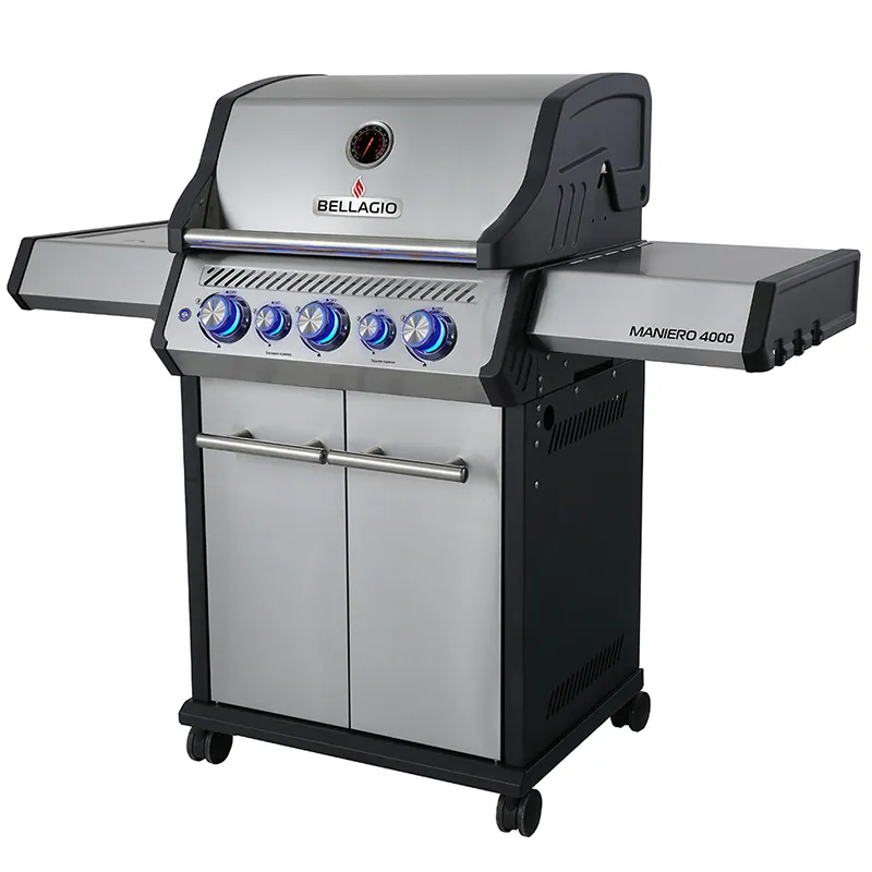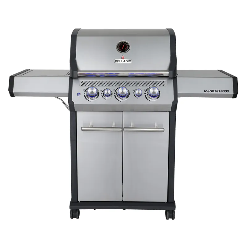 Bellagio Maniero 4000 — это современный газовый гриль среднего класса с продуманной функциональностью, ориентированный на комфортную и безопасную готовку на открытом воздухе. Он сочетает практичность, надёжные материалы и удобные детали для повседневного использования.Ключевые особенности