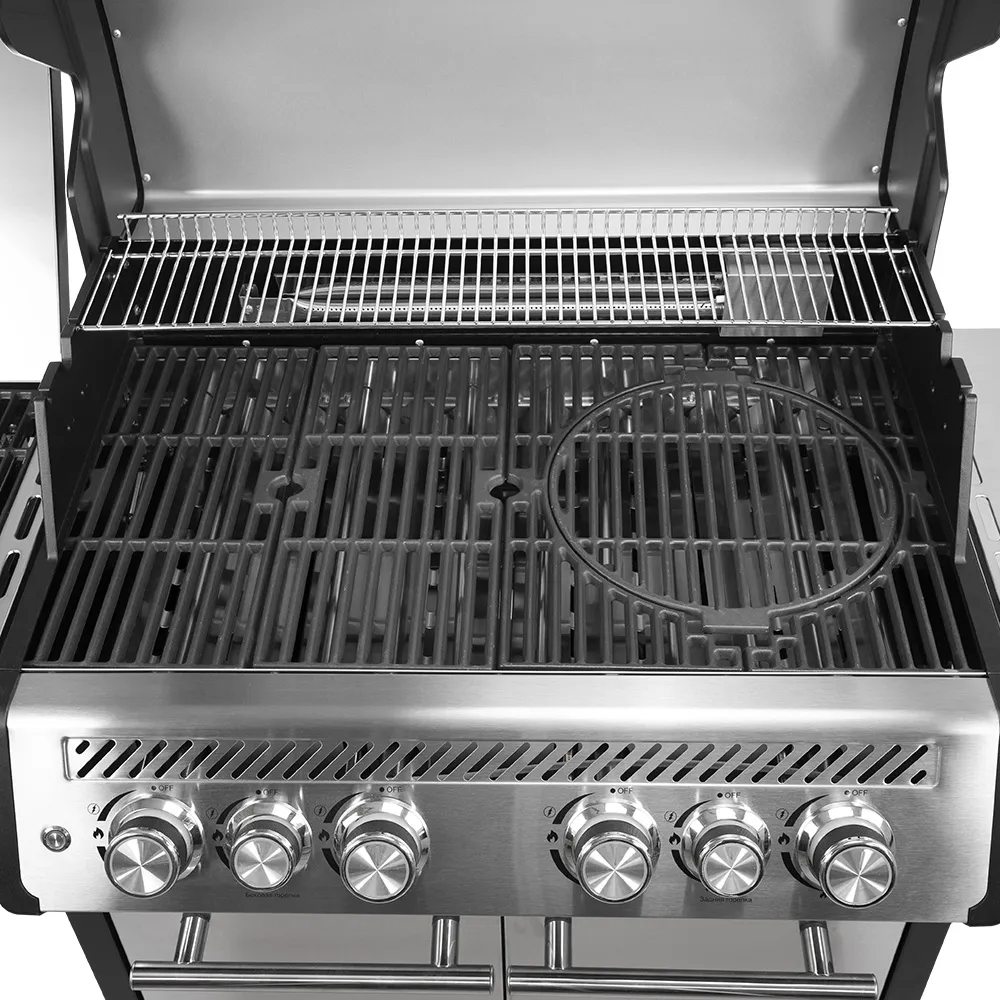 Bellagio Maniero 6000 — это флагманская модель газового гриля в линейке Bellagio, разработанная для всесезонного использования и профессионального уровня приготовления на открытом воздухе. Он сочетает мощность, надёжность, продуманную эргономику и высококачественные материалы, что делает его отличным выбором для тех, кто готовит часто и в любых погодных условиях.Ключевые особенности