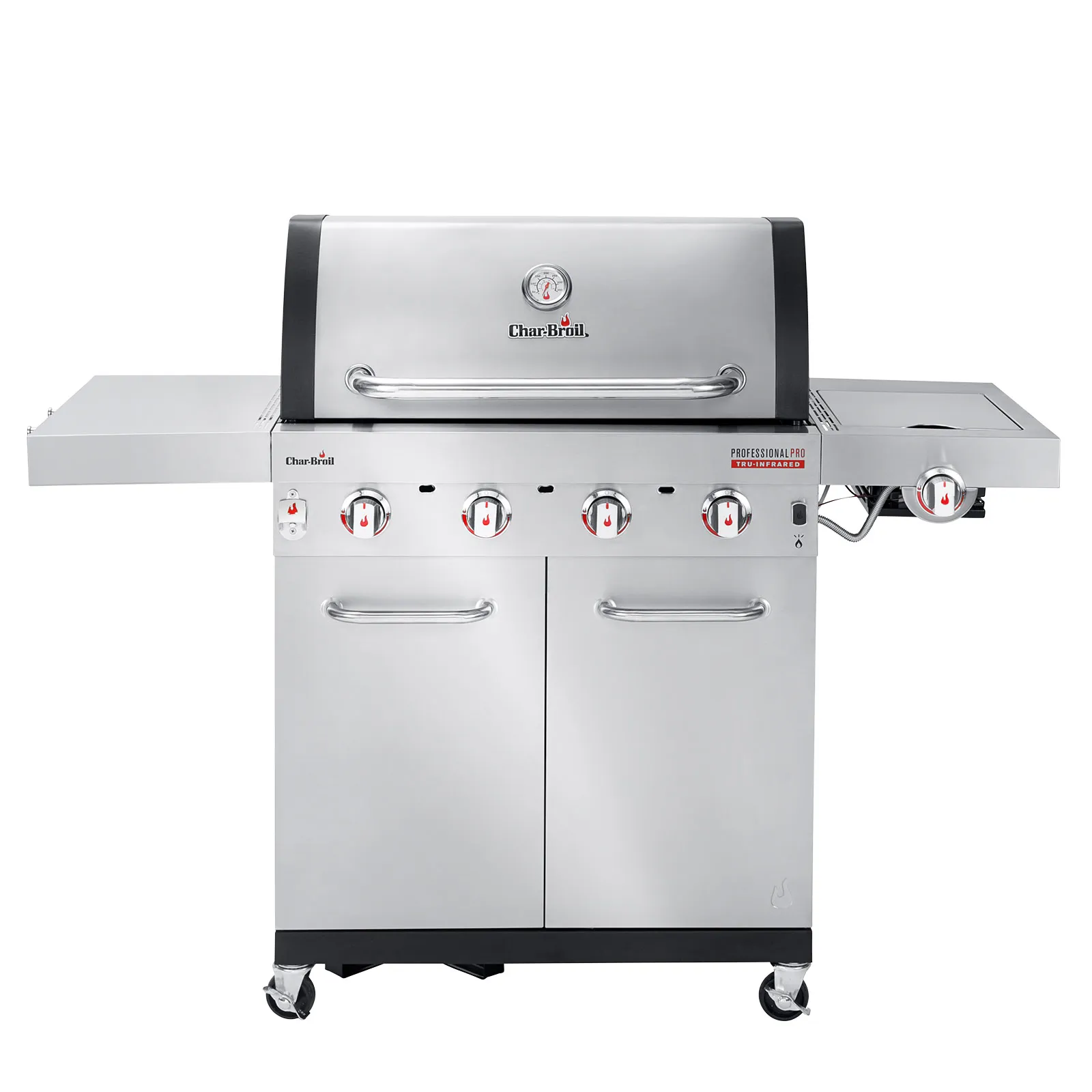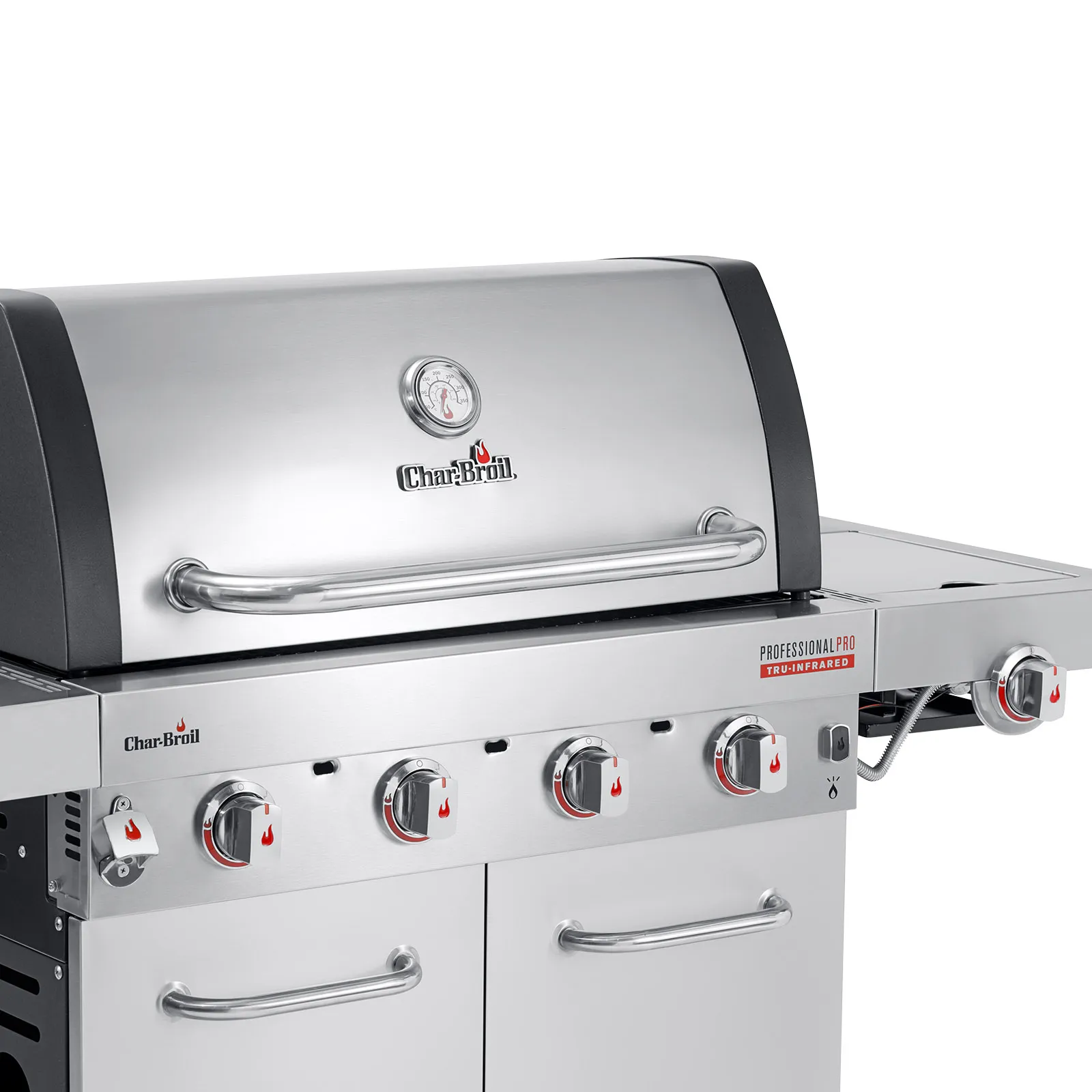 Новейшие газовые грили Char-Broil серии Professional™ третьего поколения, являются нашими самыми популярными моделями в США, Европе и по всему миру. Газовые грили Professional™ оснащаются запатентованной инфракрасной пластиной TRU Infrared™, которая обеспечивает равномерный жар по всей решетке и предохраняет от вспышек капающего жира в котле. Эта просторная модель с четырьмя основными и дополнительной боковой горелками прекрасно подойдет даже для самой большой компании.