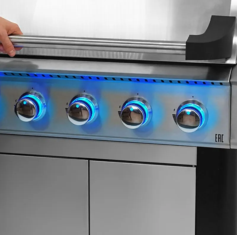 Газовый гриль Esprit Pro удачно впишется в летнюю веранду или открытую зону отдыха. Светодиодная подсветка ручек придает эффектный внешний вид. Привлекательный дизайн, корпус из нержавеющей стали, расширенный функционал и высокие технические характеристики причисляют данную модель к эталонному уровню товаров BBQ отрасли.