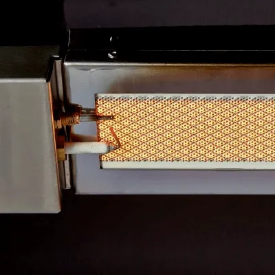 Расположенная на задней стенке гриля инфракрасная газовая горелка предназначена для создания дополнительного источника жара во время приготовления мяса на вертеле, благодаря чему образуется румяная корочка, которая запечатывает все соки внутри продукта