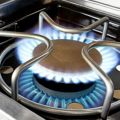 Расположенная сбоку дополнительная конфорка с защитной крышкой, оснащенная кнопкой пьезо-поджига. В закрытом состоянии крышка образует единую плоскость со столешницей. Мощность горелки 4,7 кВт