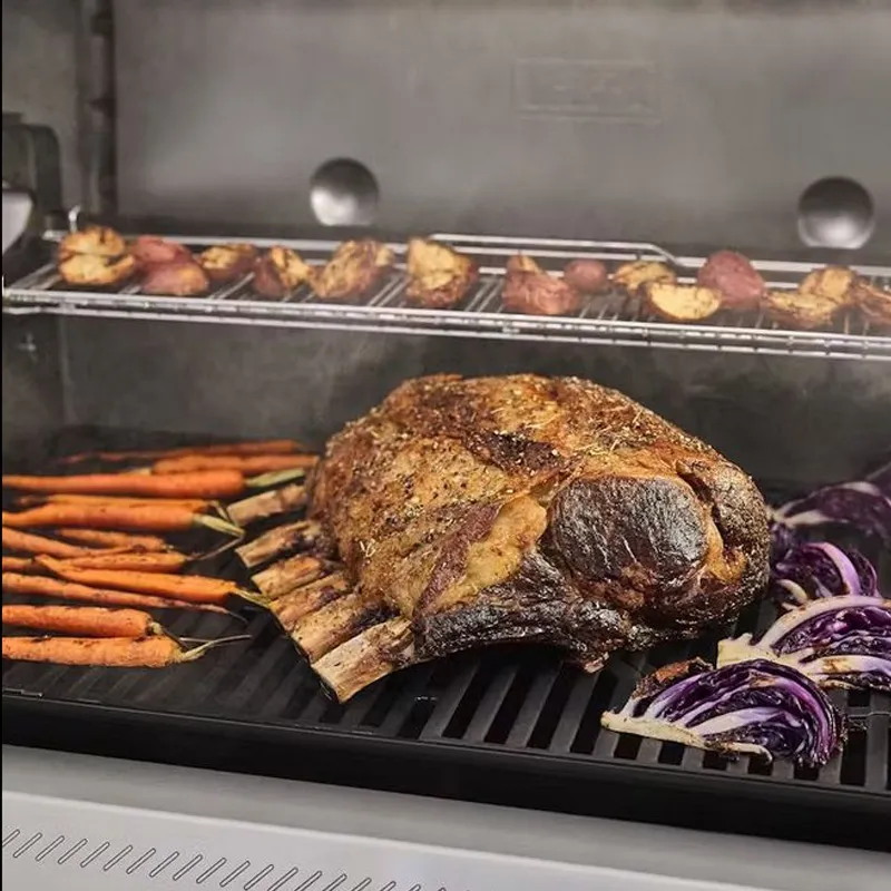 Четыре основные горелки PureBlu суммарной мощностью 14,06 кВт обеспечивают мощность и точность, гарантируя равномерное распределение тепла и быстрый нагрев. Нужна действительно высокая температура? Зона обжаривания с дополнительной горелкой быстро достигает экстремально высокой температуры, идеально подходящей для интенсивной обжарки — идеальная корочка на стейках гарантирована!Дополнительная боковая горелка идеально подходит для подогрева соусов, маринадов или кипячения воды для кофе или чая — без необходимости заходить в помещение. Над приготовленными на гриле продуктами расположена откидная полка для подогрева, которая будет поддерживать нужную температуру блюд, прежде чем они окажутся на тарелках опоздавших гостей.