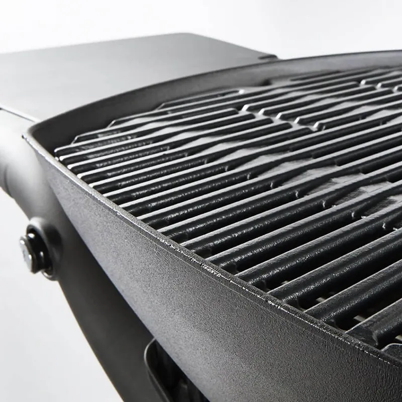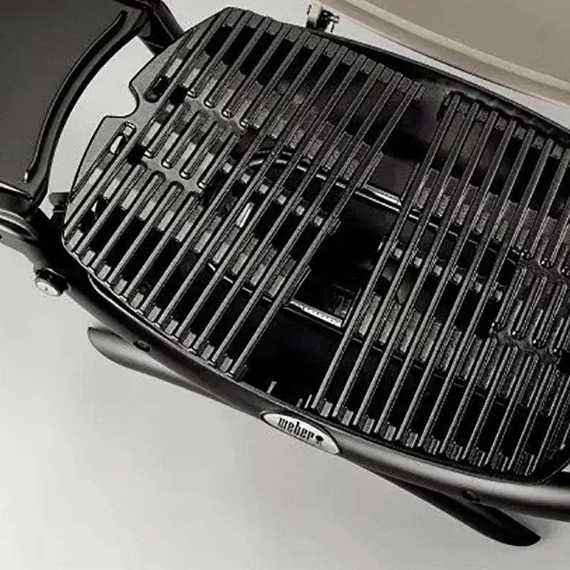 Чугунная решетка газового гриля Weber Q покрытая фарфоровой эмалью, исключает пригорание пищи.