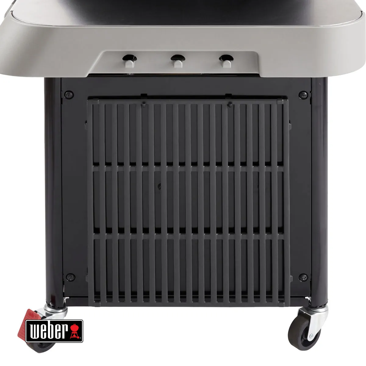 Этот обновленный дизайн легендарного гриля Genesis предлагает четыре горелки, обеспечивающие пространство для готовки большого количества блюд. Основная зона приготовления имеет размер 86 х 48 см, а складная верхняя решетка 82 х 27 см создает дополнительное пространство для готовки. Увеличенная высота крышки позволяет использовать вертел, не удаляя основную решетку. В комплект входит решетка Weber Crafted, совместимая со всеми круглыми вставками системы GBS и квадратными аксессуарами. Система Weber Crafted позволяет устанавливать различные аксессуары, такие как сковорода для гриля, ростер для птицы, камень для приготовления пиццы и многие другие. Кроме того, этот гриль оснащен большим складным столиком справа, что дополнительно увеличивает рабочую площадь.