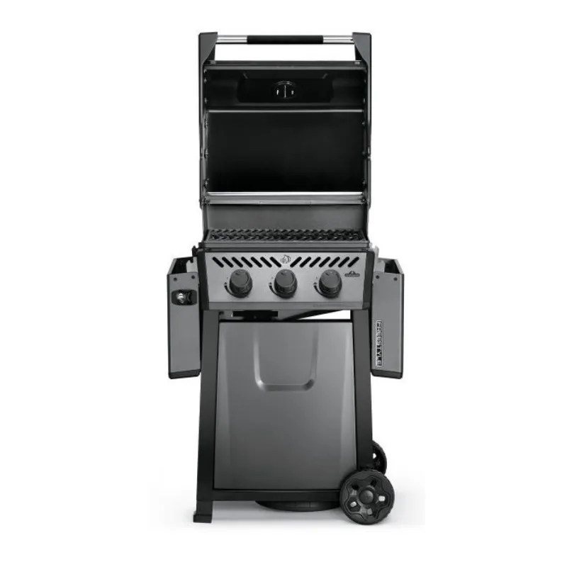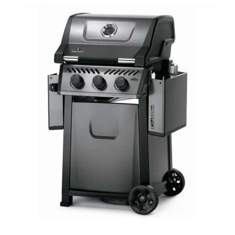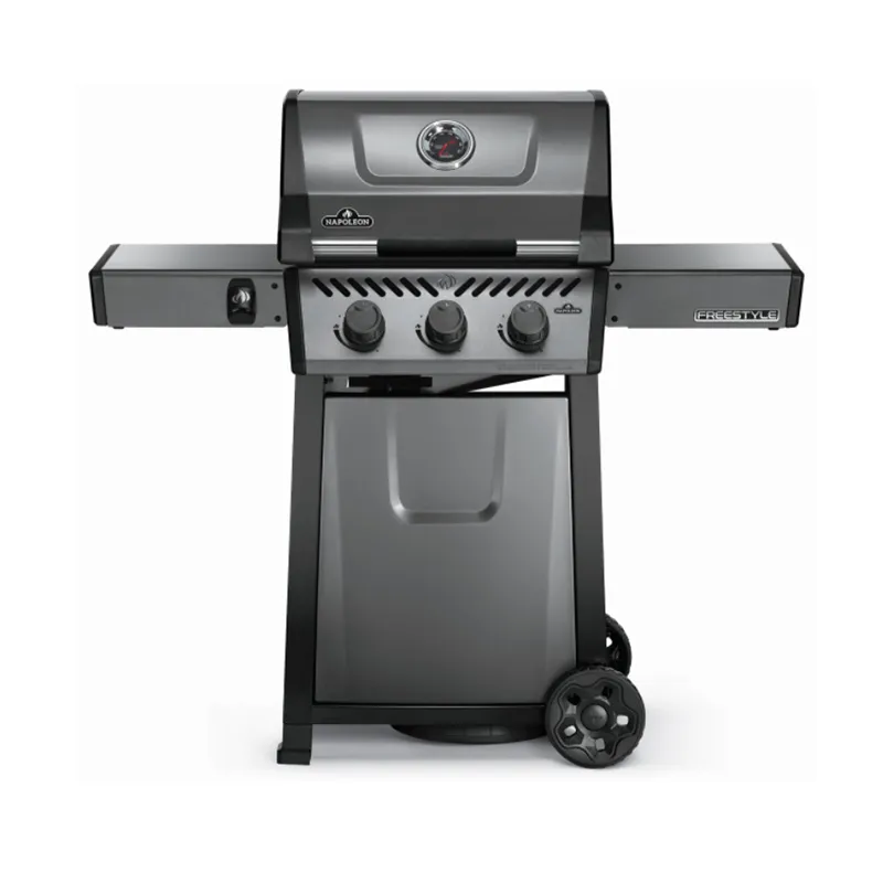 Стильное графитовое покрытие крышки гриля, ручка Soft-touch, пластины-испарители с фарфоровым покрытием - отличительные особенности модели Freestyle-365. Надежная система мгновенного поджига JETFIRE™ позволяет быстро и легко зажигать горелки, а пластины-испарители с фарфоровым покрытием обеспечивают равномерную передачу тепла. Оба столика складываются для компактного хранения. Широкие всепогодные колеса позволят с легкостью перемещать его по любой поверхности. В закрытом основании гриля расположено встроенное посадочное место для газового баллона, в котором баллон плотно фиксируется, а это значит, что при транспортировке гриля баллон останется на месте.