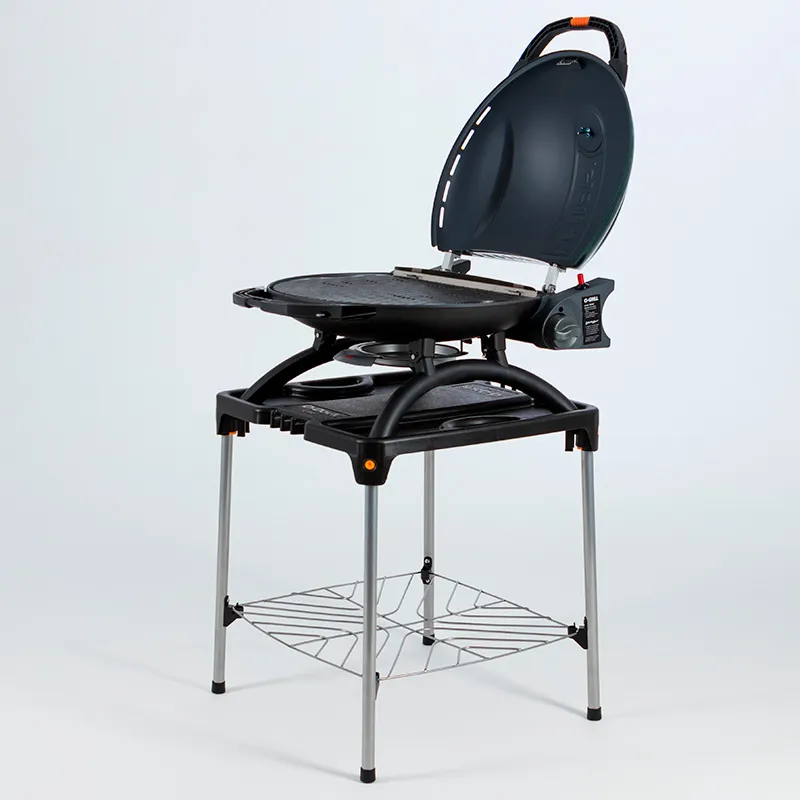 - Большой набор аксессуаров (столики с выемками для надежной установки гриля, сменная многослойная металлическая решетка, сумка-чехол для переноски, каменная пластина для приготовления пиццы, адаптеры для различных типов газовых баллонов).
