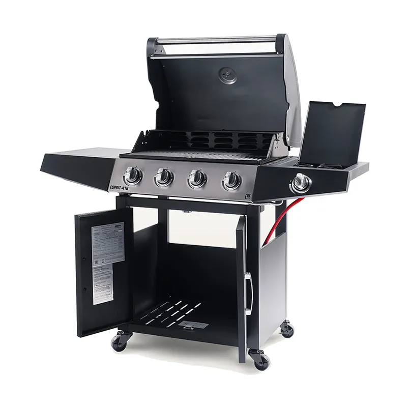 Качественный и функциональный газовый гриль Esprit-41B имеет в своем арсенале встроенную систему поджига, четыре трубчатые горелки из нержавеющей стали и чугунные решетки.