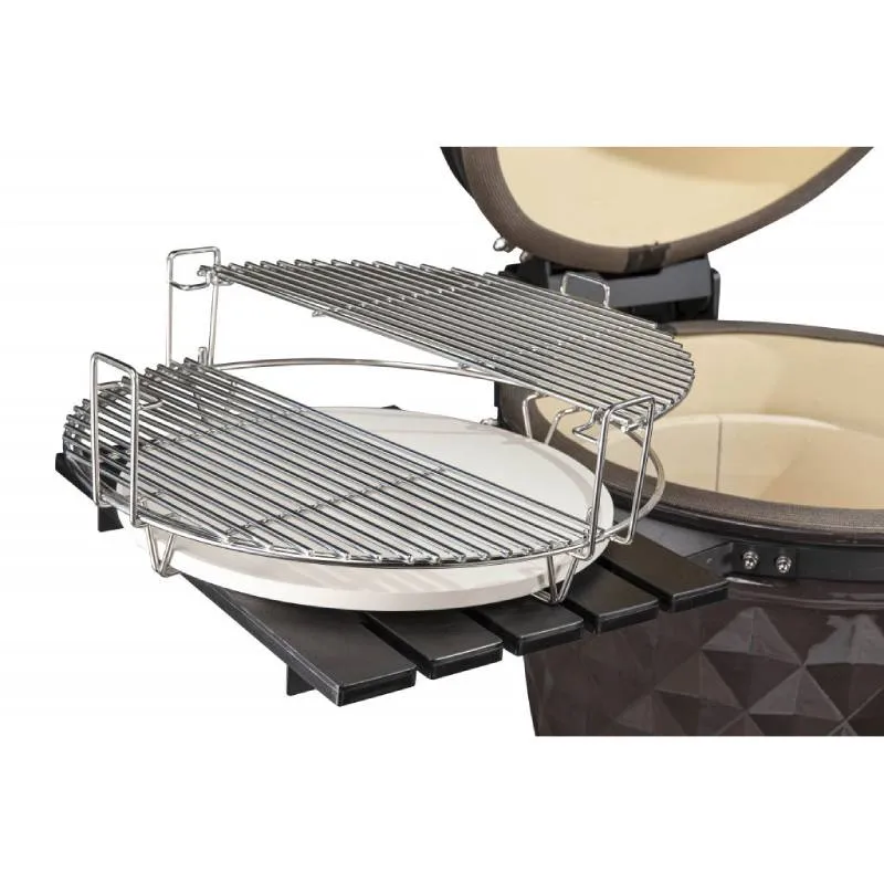 Двухуровневая система позволит одновременно готовить мясо и овощи, а также складывать готовые блюда для поддержания оптимальной температуры перед подачей.
