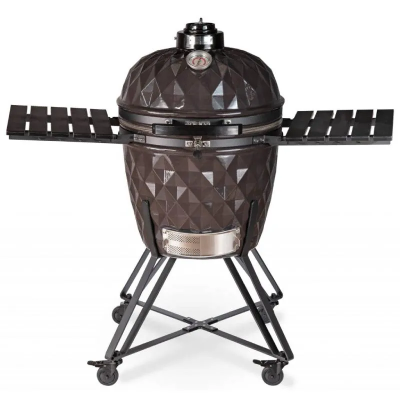 С керамическим грилем Diamond Egg XL для Вас открываются безграничные возможности в приготовлении как простых и быстрых, так и более сложных блюд для особенных случаев. Наш гриль - это многофункциональное устройство, которое умеет жарить, запекать, коптить, тушить и позволяет Вам бесконечно экспериментировать! Еда, приготовленная в керамическом гриле, отличается сочностью и приятным ароматом “дымка”. Керамический гриль Diamond Egg XL - настоящий must have для тех, кто жить не может без вкусно приготовленного мяса, рыбы или овощей. Высокое качество керамического гриля Diamond Egg XL гарантирует Вам безопасность при его эксплуатации и долговечность его службы. Грили Diamond Egg можно использовать как на свежем воздухе, так и в помещении под вытяжкой. Вес гриля - 100 кг. Стенки выполнены из толстой керамики, при этом благодаря наличию встроенной системы подъёма крышку гриля сможет поднять даже ребёнок. Уникальный дизайн керамического гриля Diamond Egg XL запатентован на территории России. Такой современный яркий помощник не только украсит ваш загородный дом, сад, террасу, беседку, но и станет сердцем вашей загородной жизни, будет объединять близких, располагая к тёплому семейному общению.