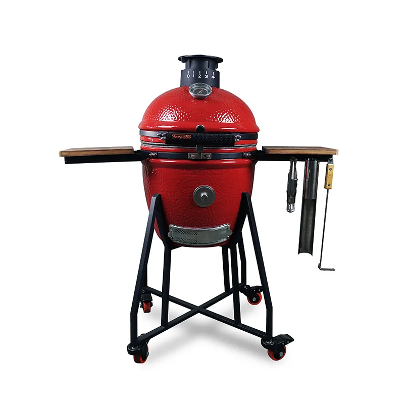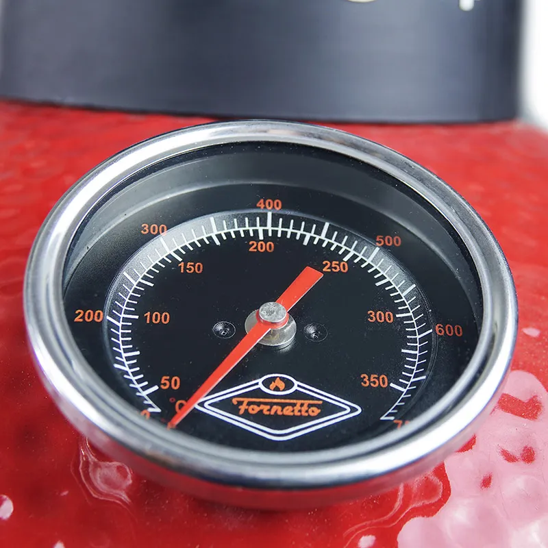 Все грили Fornetto отлично упакованы и имеют достойную комплектацию. При создании были учтены все важные ключевые особенности Kamado, такие как алюминиевая верхняя вентиляция с настройками калибровки для точной регулировки воздушного потока.