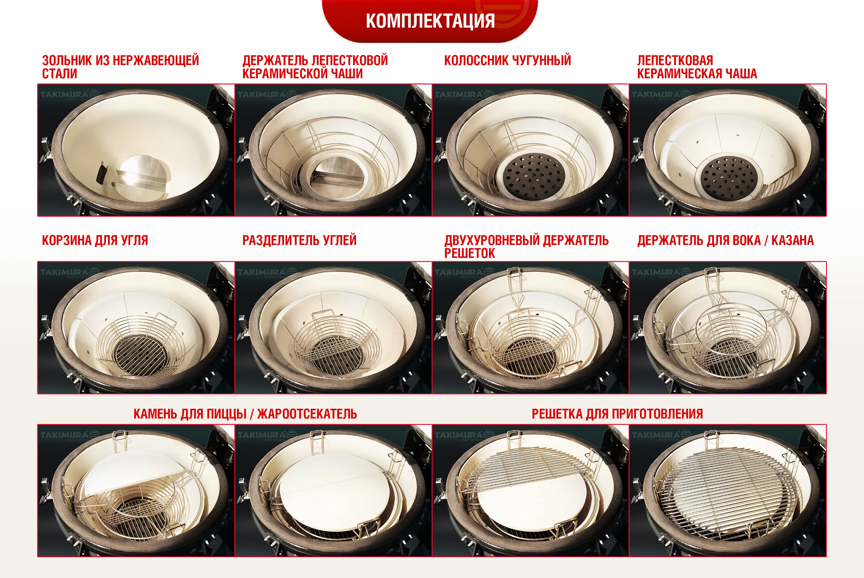 Керамический гриль Takimura — совершенство вкуса и технологийПогрузитесь в мир изысканного кулинарного искусства с керамическими грилями премиальной серии Takimura. Эти устройства — воплощение элегантности и передовых технологий, созданных для тех, кто ценит аутентичный вкус блюд, приготовленных на углях.