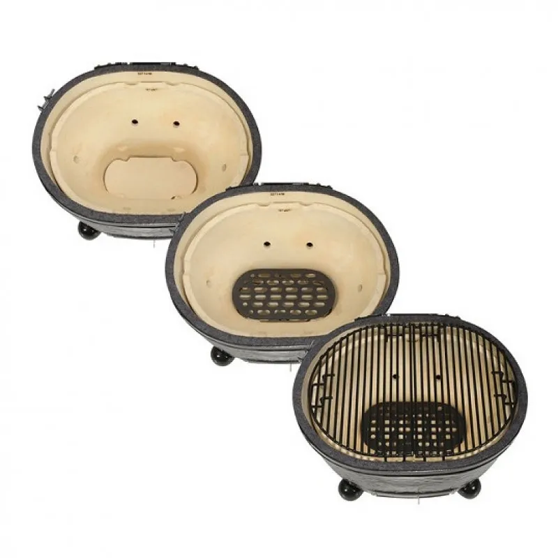 Primo Oval Junior – одновременно гриль, коптильня, печь для пиццы, тандыр, русская печь и духовка. Запатентованная овальная форма позволяет готовить два блюда одновременно или зажаривать длинные куски мяса и крупную рыбу целиком.
