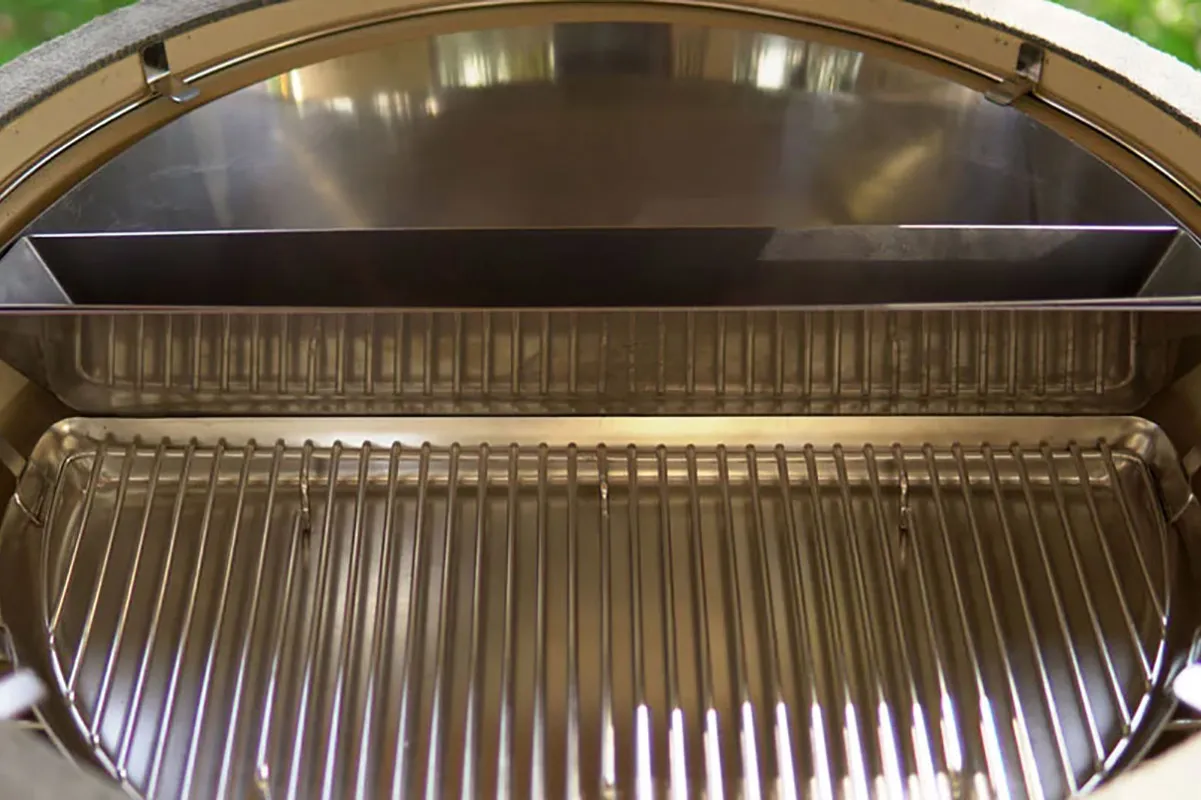 - Керамическая пластина-жароотсекатель дает дополнительные опции по организации непрямого жара и выпеканию пиццы и пирогов
