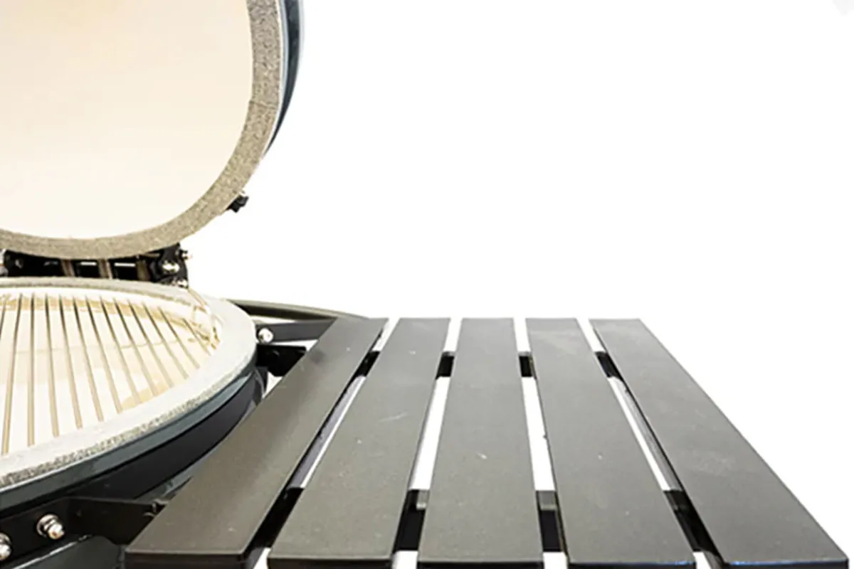 Новое поколение керамических грилей от Slow ‘N Sear: комплектация Deluxe с корзиной SnS, поддоном, подставкой второго уровня в комплекте. Модернизированная конструкция для ещё большего комфорта гриль-мастера.