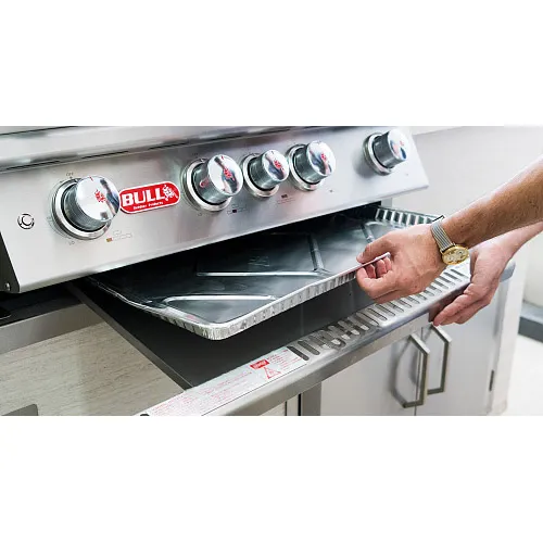 Удобно расположен с фронтальной части и на всю ширину гриля. Используя одноразовые алюминиевые лотки, вам даже не придется его чистить.