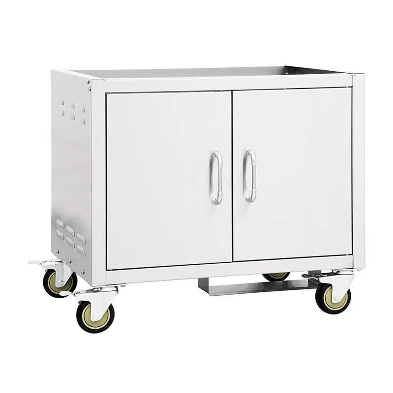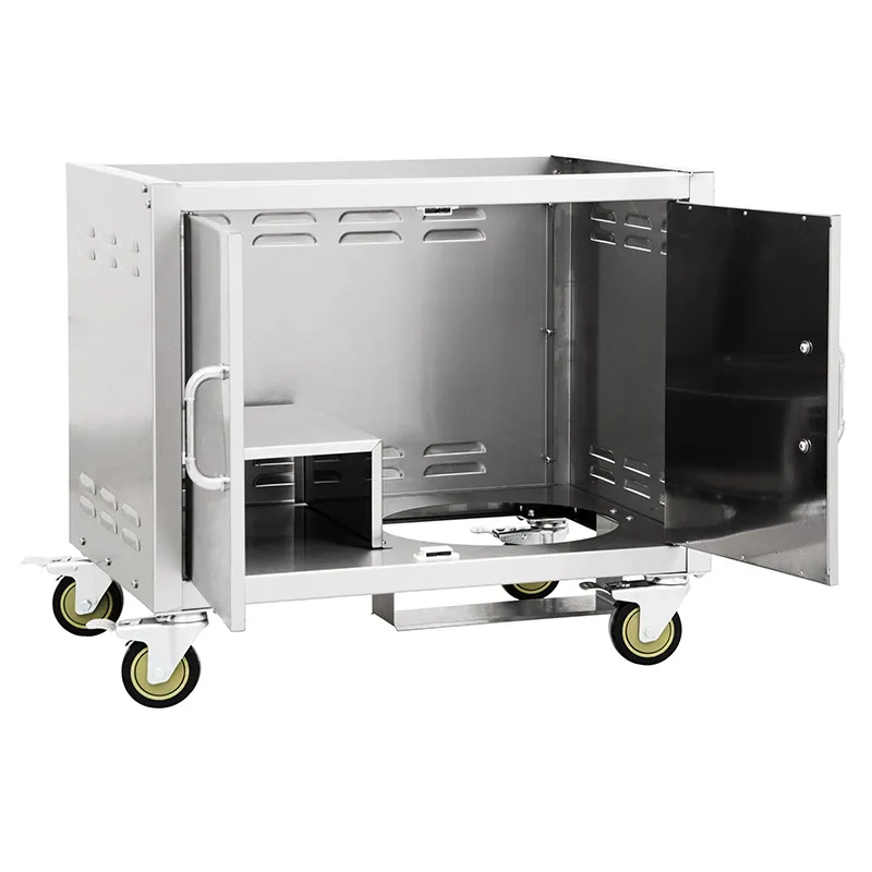 Надежная конструкция из 304-й нержавеющей стали. Основание имеет вместительный ящик с углублением под баллон.