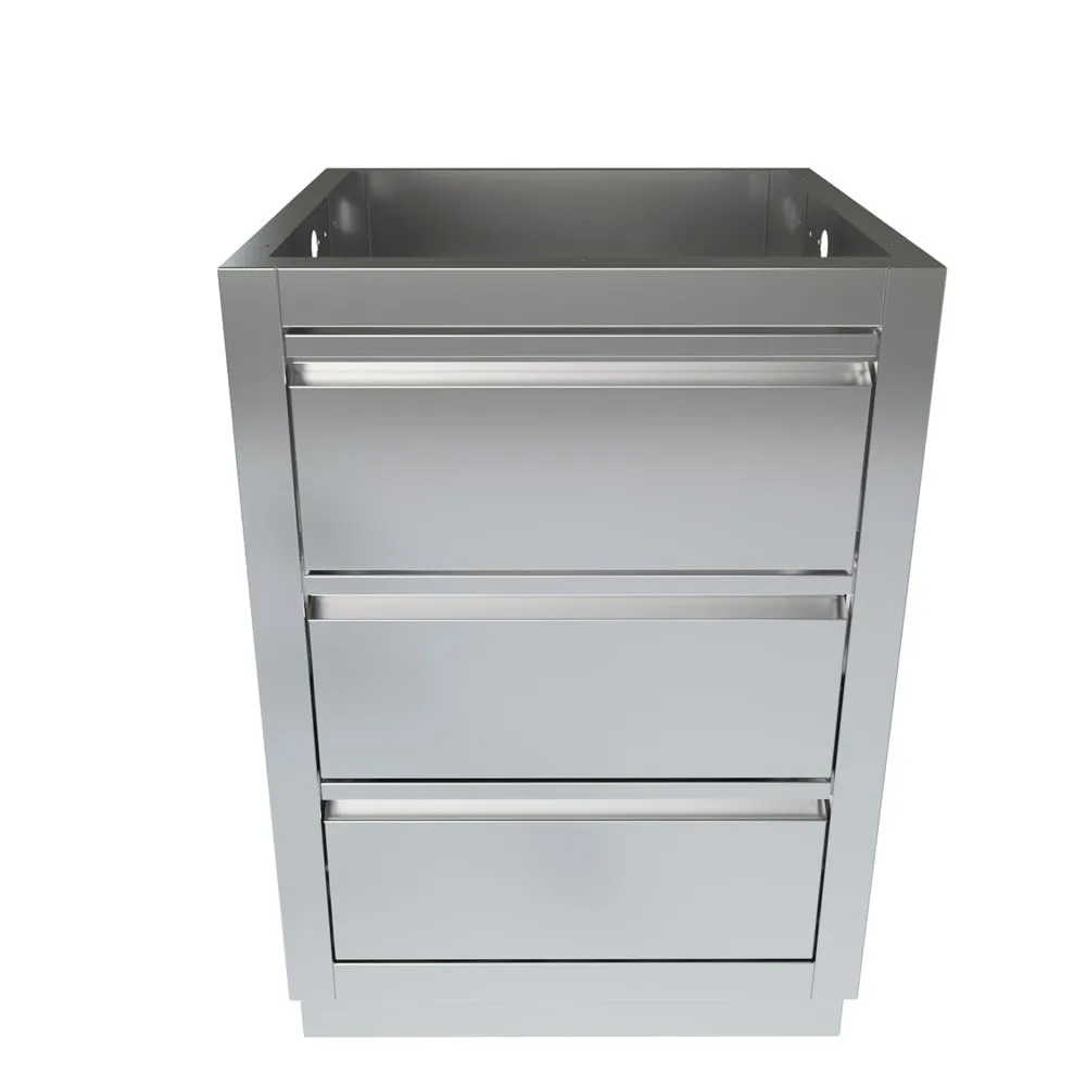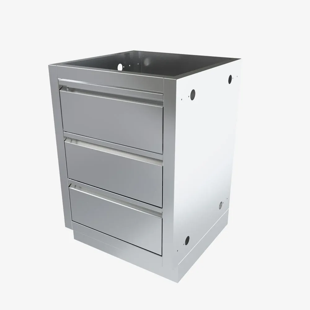 Универсальная тумба шириной 860 мм с двумя выдвижными ящиками и декоративной фальш-панелью — функциональный и эстетичный элемент модульной кухни. Полностью изготовленная из пищевой нержавеющей стали AISI 304, она обеспечивает долговечность, гигиеничность и современный индустриальный стиль в зоне готовки.