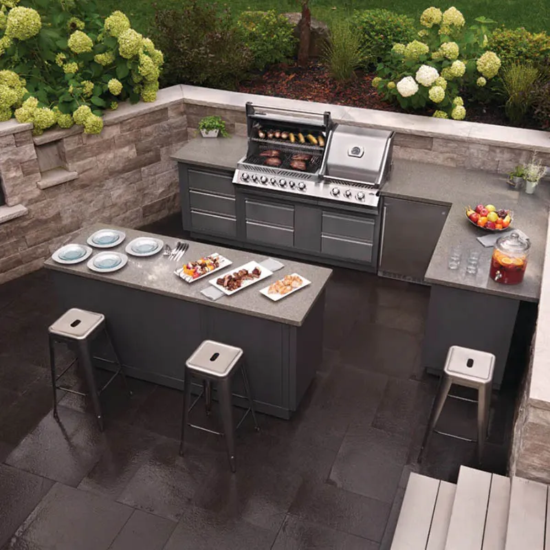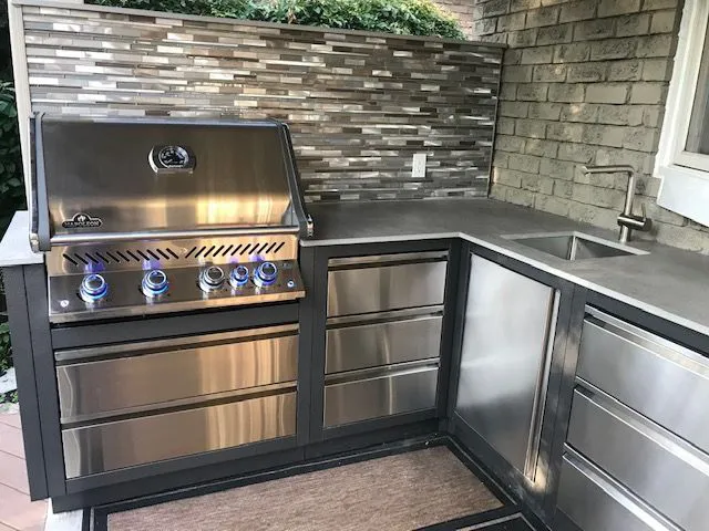 Он отодвигает кухонный фронт от стены на 200 мм для беcпрепятственного открывания крышки гриля и возможности подводки инженерных коммуникаций (электричество, вода, канализация) за фронтом к любому модулю кухни.