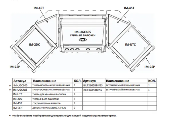 - Тумба-основание гриля BILEX-605 с 2-мя выдвижными ящиками UGC605 (размеры: ШxГxВ - 103x61x89 см) - 1 шт.