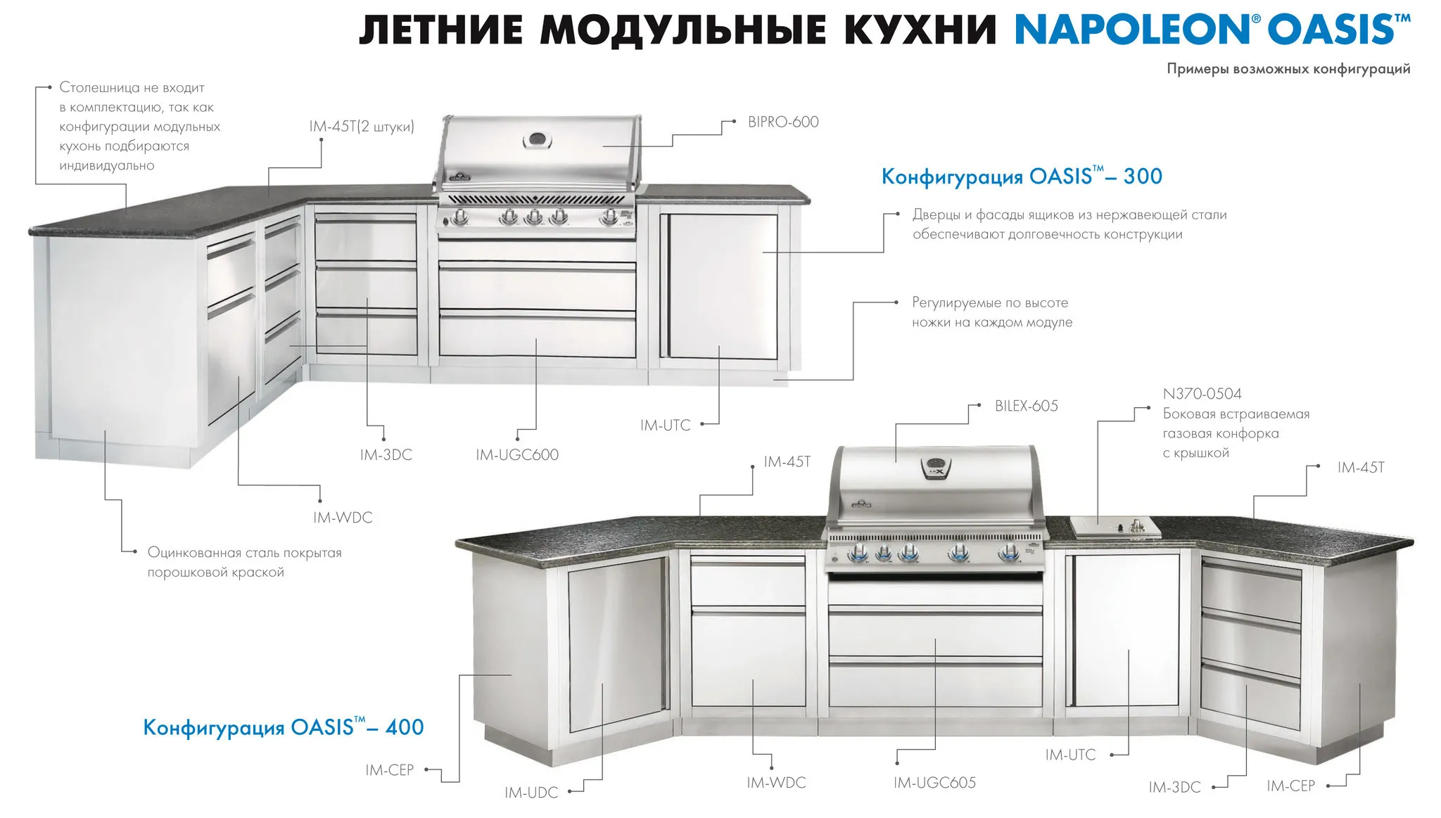 Стандартная комплектация конфигурации кухни Napoleon Oasis™ - 300/485: