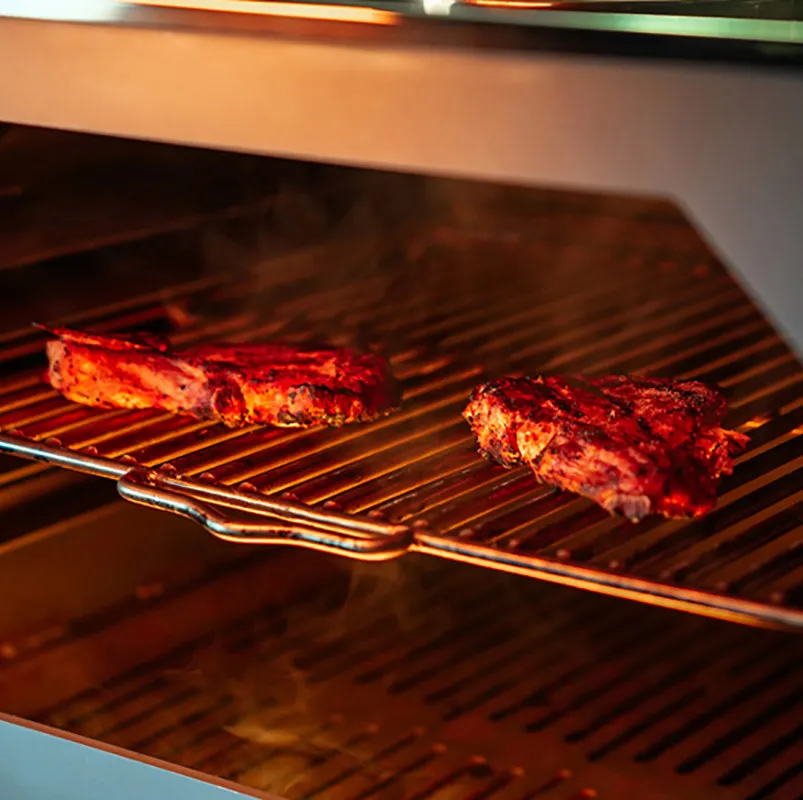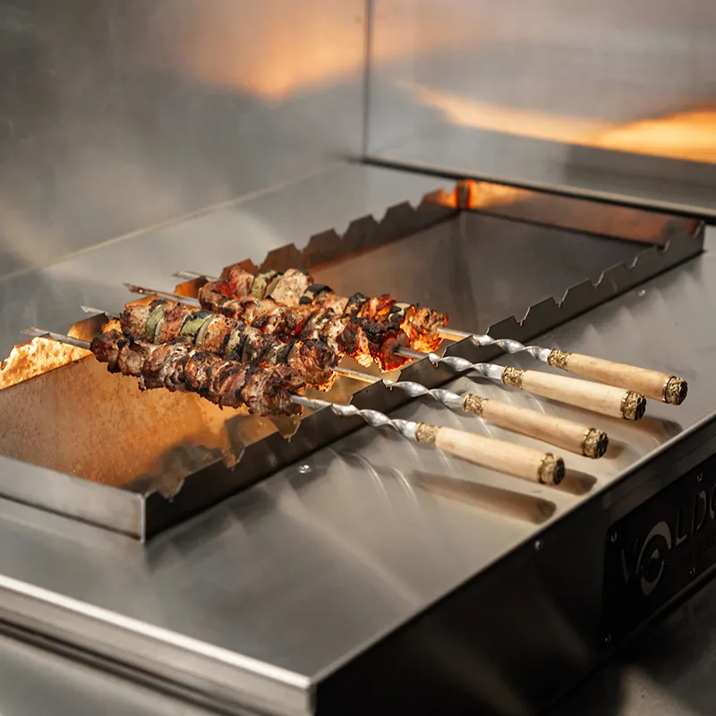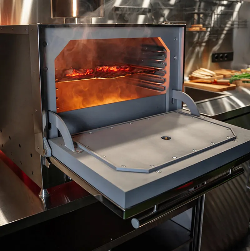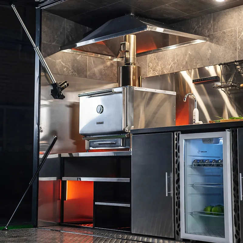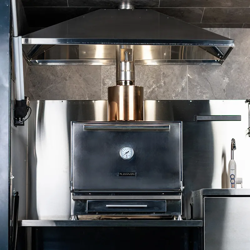 Модульная конструкция позволяет легко адаптировать и настраивать каждый элемент в зависимости от требований и предпочтений пользователя. Профессиональная гриль-печь является центральным элементом этого комплекта, обеспечивая равномерное приготовление различных блюд за счет своих мощных нагревательных элементов и точной системы контроля температуры. Её вместительность позволяет готовить сразу несколько порций, что делает её идеальной для больших компаний или мероприятий на открытом воздухе.