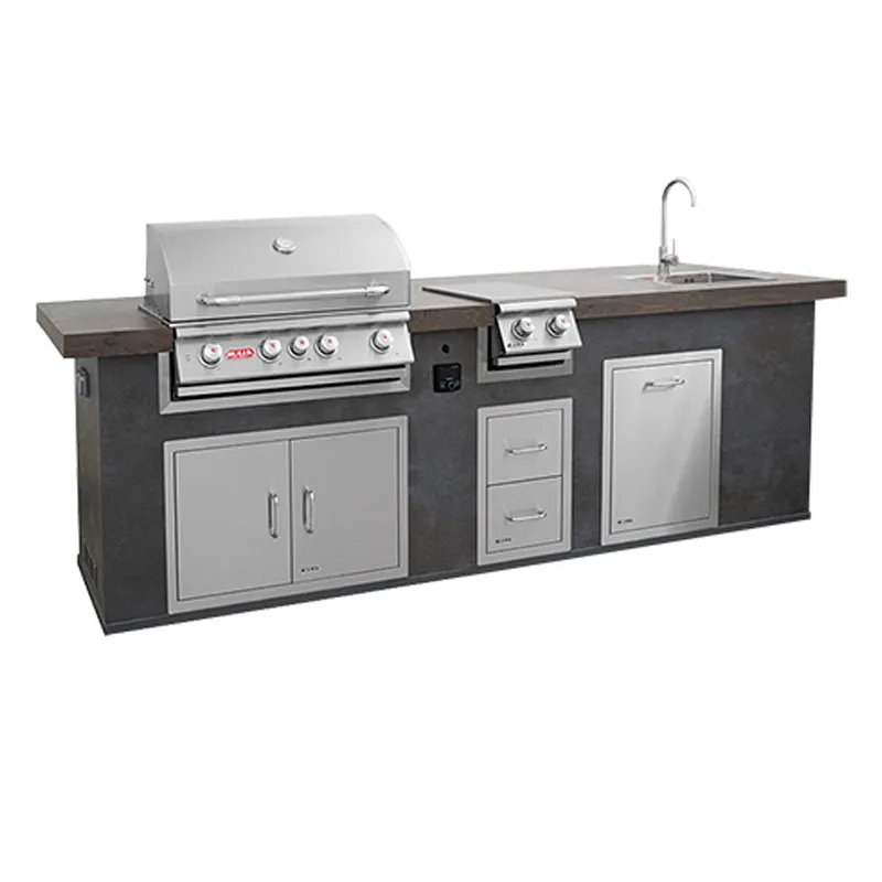 Прямая кухня на базе гриля Bull Аngus. С мойкой, встроенной боковой горелкой и аудиосистемой.