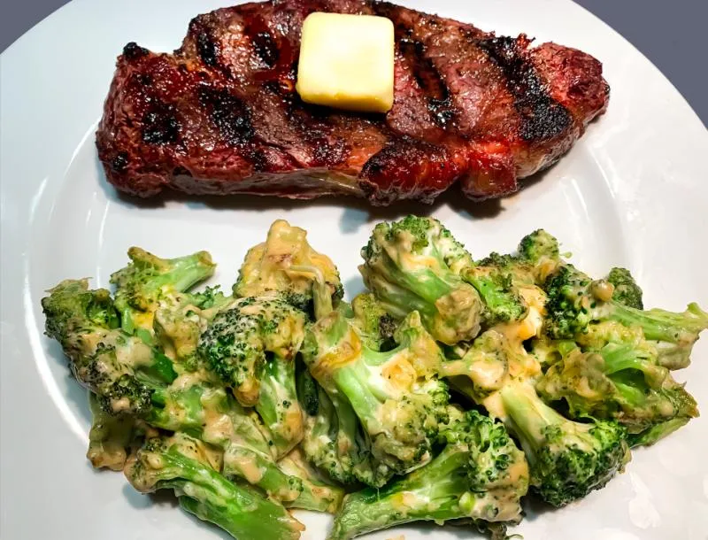 Рибай-стейки в чесночной корочке с брокколи на гриле