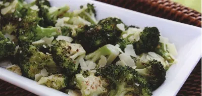 - Уложите соцветия брокколи на сковороду для гриля. Готовьте в режиме прямого среднего жара при закрытой крышке приблизительно 4-6 минут, пока она не прогреется и начнет слегка подрумяниваться. Если нужно, переверните. Снимите брокколи с гриля и посыпьте сверху пармезаном. Подавайте на стол в теплом виде.