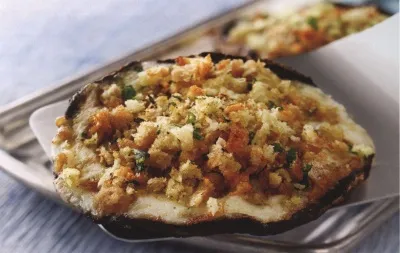 - Очистите решетку для гриля с помощью специальной металлической щетки. Обжарьте шампиньоны выпуклой стороной кверху в режиме прямого среднего жара при закрытой крышке 4-6 минут, пока они постепенно не станут мягкими. Смажьте шампиньоны оставшимся на тарелке маринадом, затем переверните и в каждый гриб положите по 3-4 ст. л. сыра. Закройте крышку и готовьте еще 4-6 минут, пока шампиньоны не станут нежными и мягкими, если их надрезать ножом. На последней минуте приготовления намажьте шампиньоны смесью панировочных сухарей и петрушки. Снимите с гриля, посолите и поперчите по вкусу и сразу подавайте на стол.