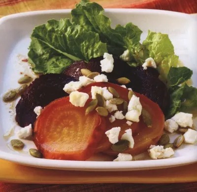 Цветная свекла с тыквенными семечками и фетой