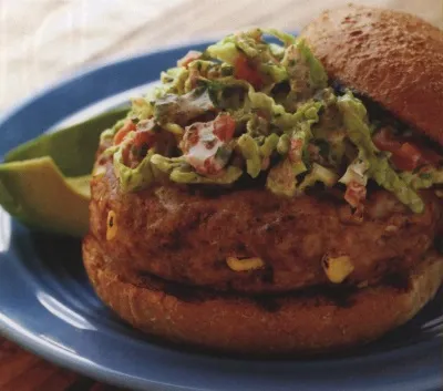 - Очистите решетку для гриля с помощью специальной металлической щетки. Жарьте бургеры при закрытой крышке в режиме прямого среднего жара 8-10 минут до готовности, не пересушивая их. Переверните. За минуту до полной готовности блюда положите булочки на гриль разрезанной стороной вниз и слегка обжарьте их. В булочку положите бургер, на него положите салат из капусты.