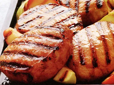 Маринованные в сидре свиные стейки с грилированными яблоками