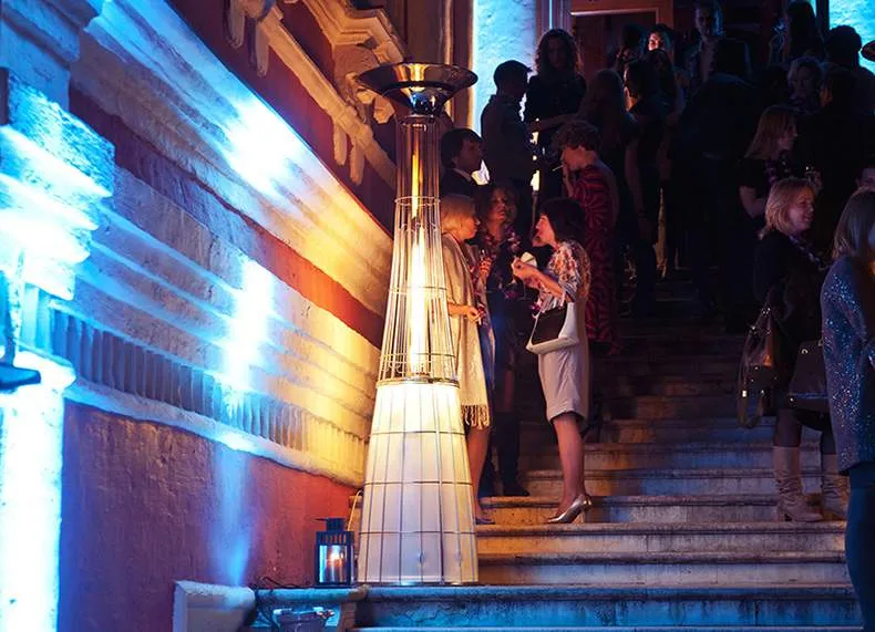 Обогреватель Dolce Vita может использоваться как газовый светильник, так как благодаря колбе, в которой горит огонь, выделяет много тепла и света. Уличные газовые обогреватели часто используют в качестве декорации на мероприятиях.