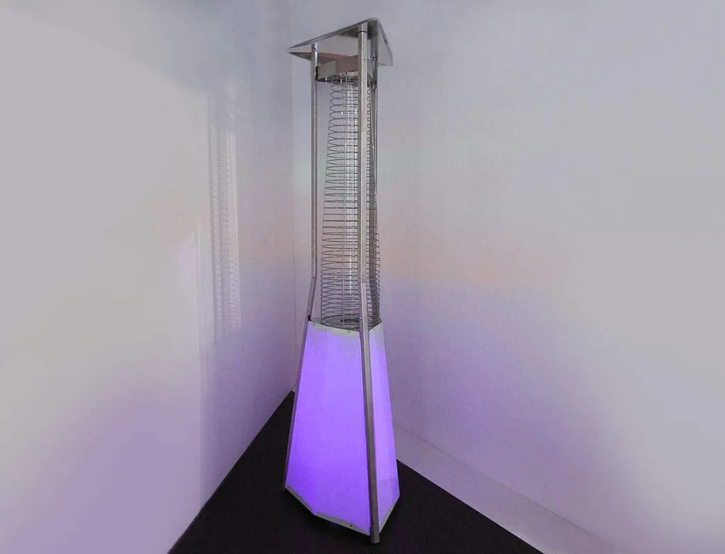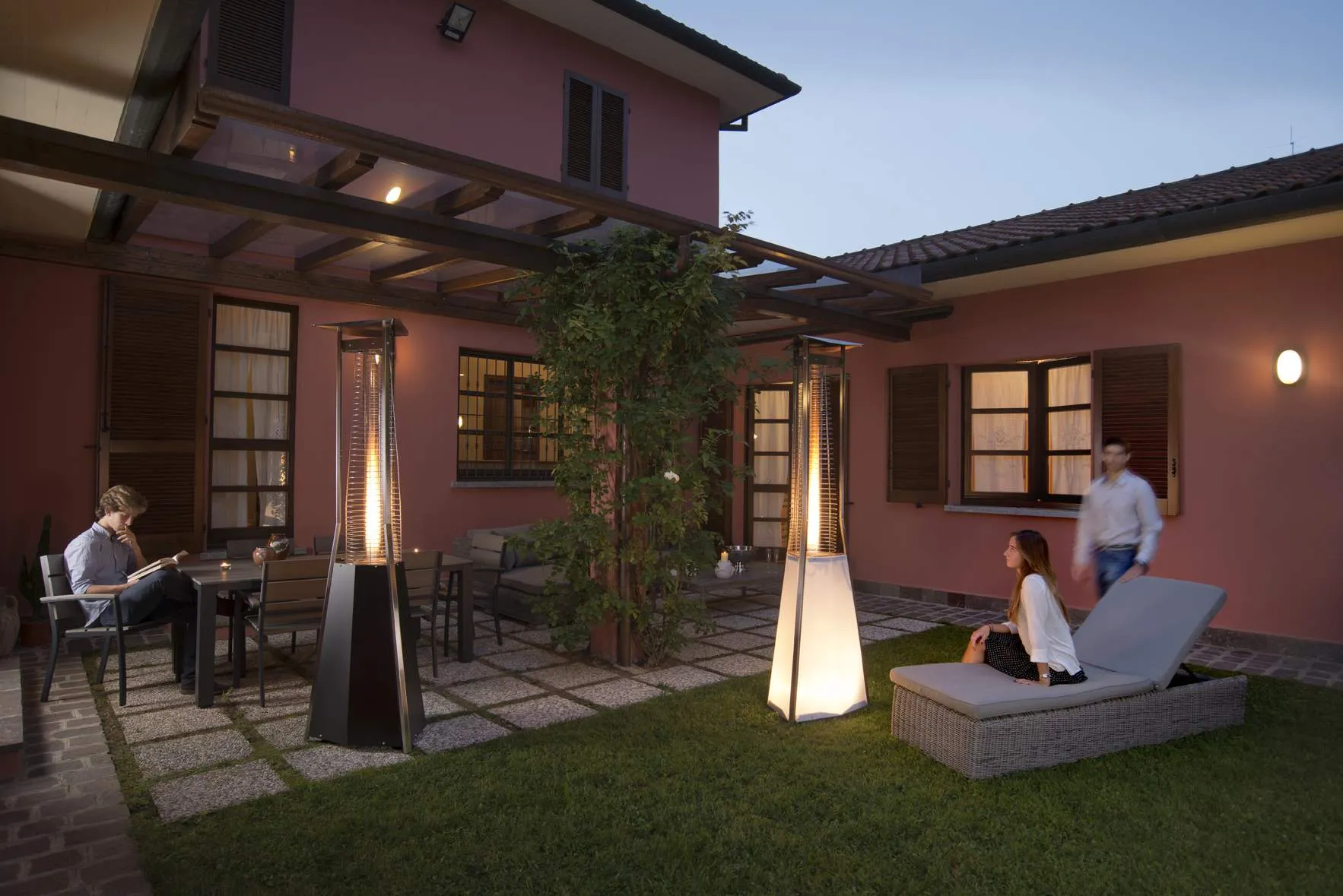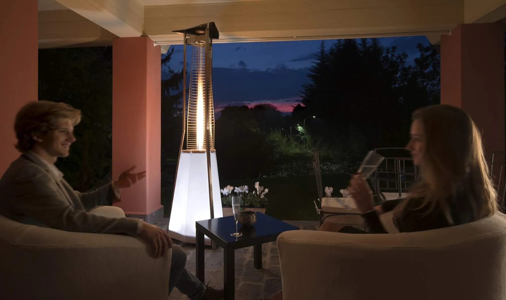 Газовый инфракрасный обогреватель SIABS KALIENTE с живым пламенем в стеклянной колбе.