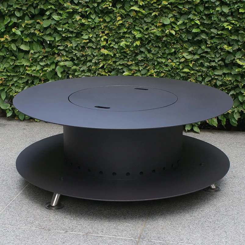Дизайнерский уличный очаг для костра из 5 мм стали с интегрированной декоративной дровницей. Очаг для костра имеет двойную стенку с теплоотводом и зольную корзину из нержавеющей стали. Очаг можно использвать в качестве садового столика. Крышка для очага в комплект не входит. Приобретается отдельно