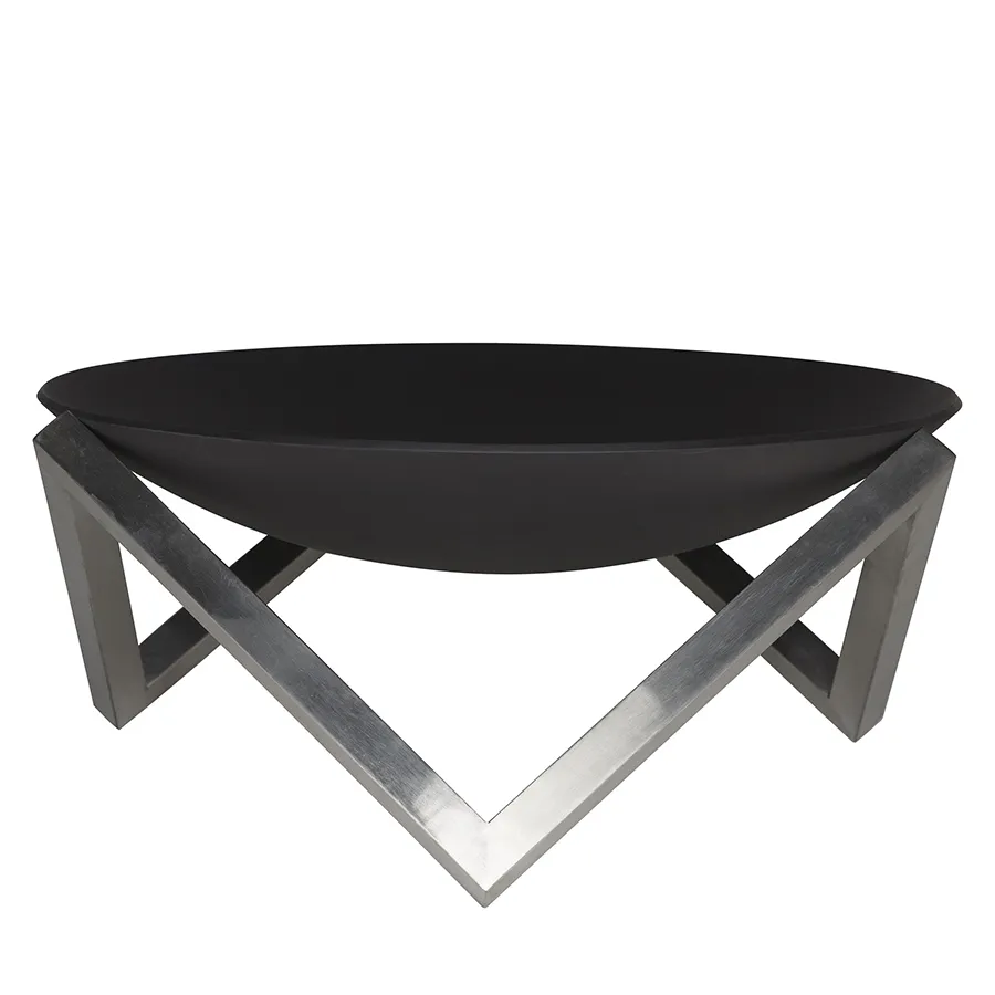 Дополнительное термостойкое покрытие придает изделию законченный вид, а так же дополнительную защиту. Подставка для очага выполнена из нержавеющей стали, что позволяет добится лучшего сочетания долговечности, практичности и эстетики. Очаг имеет современное основание.