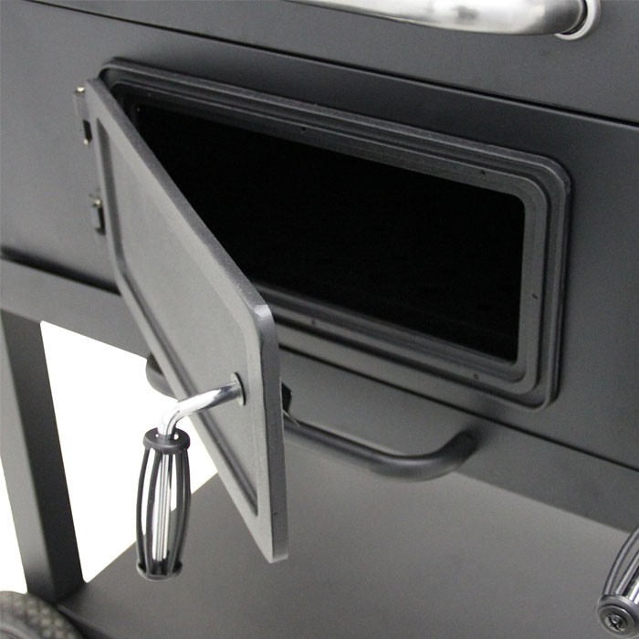 - профессиональный датчик контролирует тепло, а сковорода для угля позволяет использовать более широкий диапазон температур для приготовления пищи, регулируя ее высоту с помощью удобной рукоятки;
