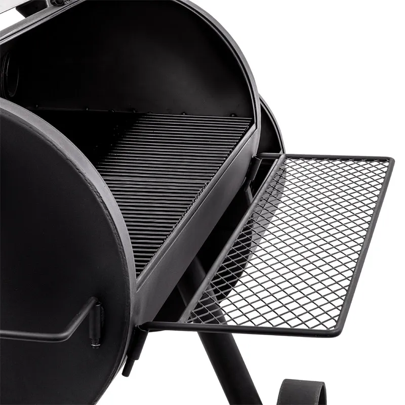 Изготовленная из высококачественной стали, её конструкция выдерживает экстремальные температуры даже при использовании дров, обеспечивая стабильный жар на протяжении многих часов. Благодаря офсетной схеме (отдельная топка сбоку), продукты томятся в чистом дыму без контакта с открытым пламенем — идеально для brisket, свиных рёбер, целой птицы или лосося.