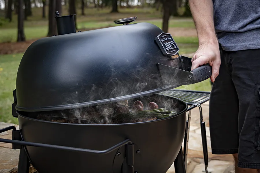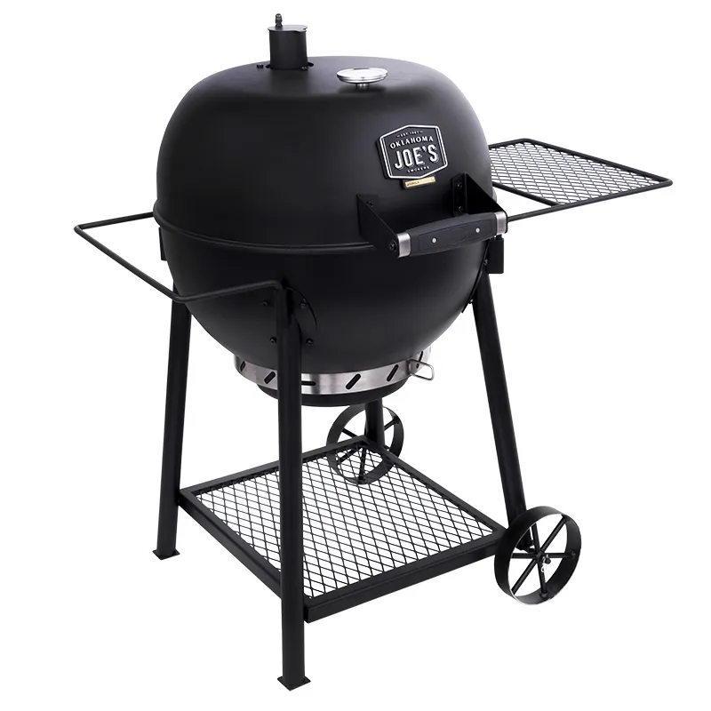 Угольный гриль Oklahoma Joe's® Blackjack - это классический угольный гриль дополненный инновационными деталями. Котёл и крышка гриля имеют матовое фарфоровое покрытие для защиты от коррозии. Крышка на петлях гарантирует удобство готовки, а съемный, с фарфоровым покрытием сборник пепла очень просто чистить. Круговая система забора воздуха 360° и регулируемая вытяжная труба обеспечат равномерное горение угля и контроль температуры. Профессиональный, легкочитаемый 3х дюймовый термометр. Боковое пристолье и держатель для полотенец можно легко менять местами.