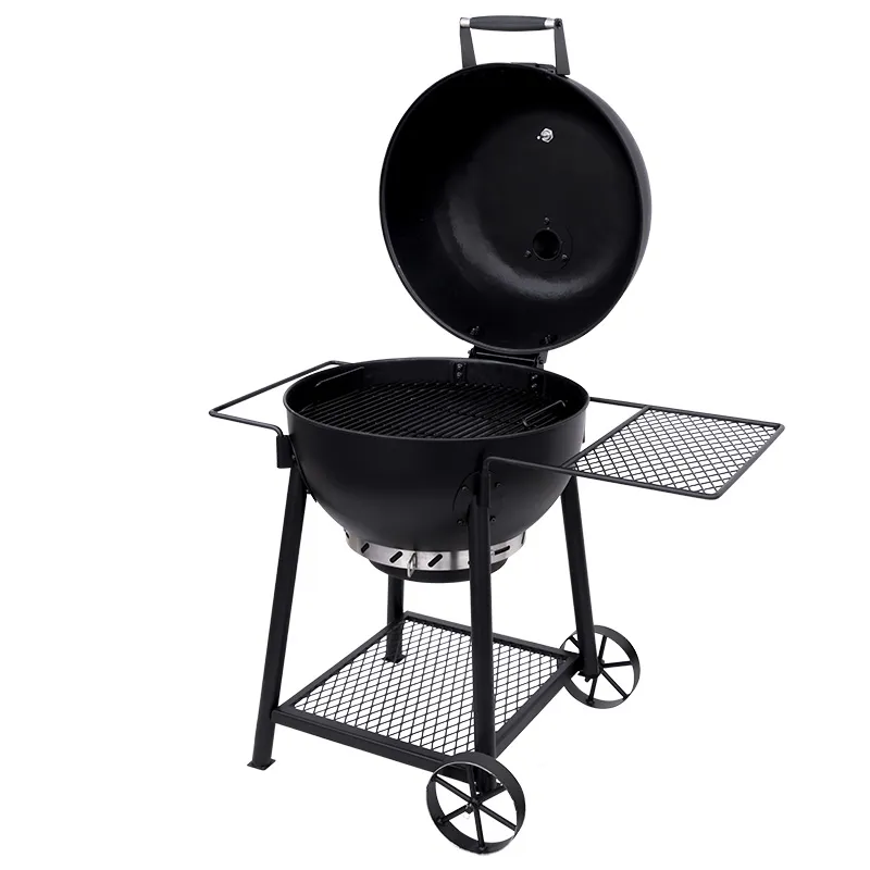 Угольный гриль классической круглой формы с уникальными характеристиками. Модель, в которой реализованы самые передовые инженерные идеи. Этот гриль имеет уникальную запатентованную конструкцию решетки, у которой отсутствуют вспышки от капающего жира, сквозь нее не проваливаются мелкие кусочки, равномерно распределяется жар, меньше расход угля.