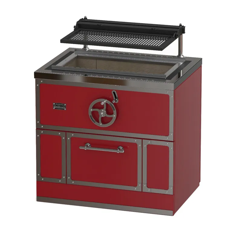 - Стационарный угольный гриль открытого типа. Решетка гриль с механизмом подъема над зоной очага.