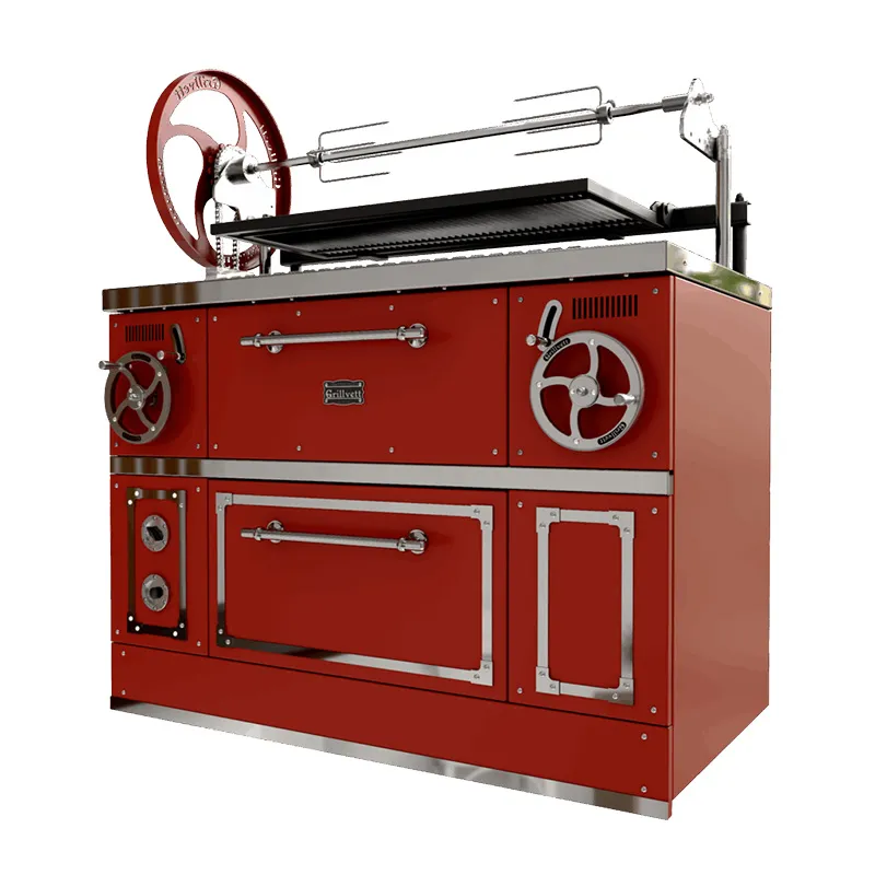 - Решётка-гриль с подъёмным механизмом — точная регулировка расстояния до огня для контроля степени прожарки.