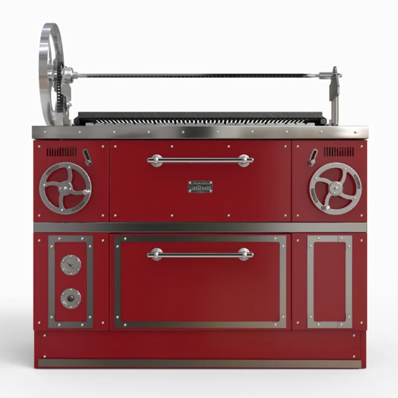 - Автоматический вертел с подъёмным механизмом — равномерное вращение мяса над углями, идеальная прожарка со всех сторон, минимум участия повара.