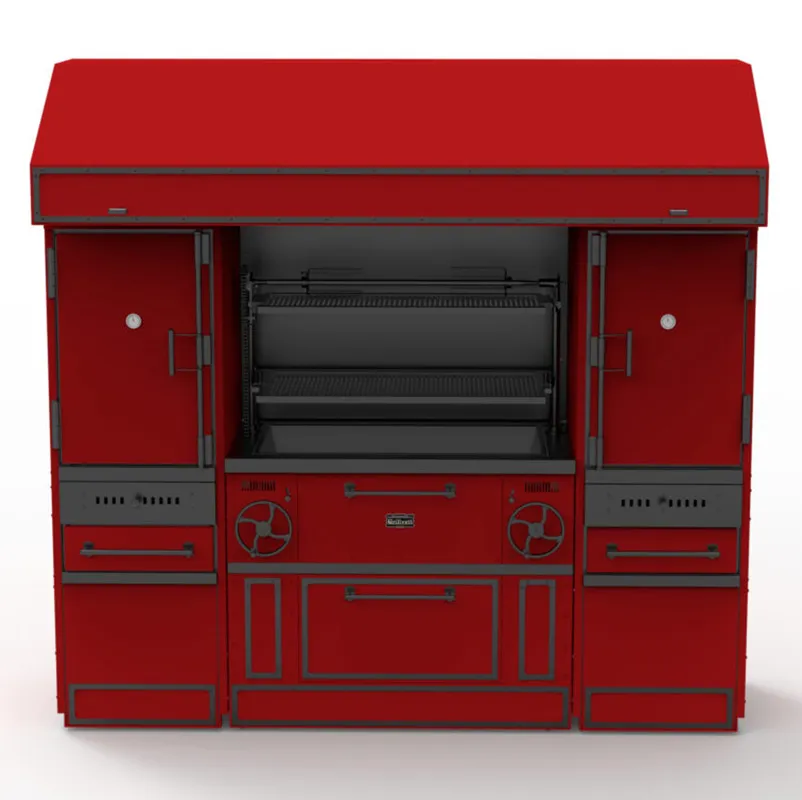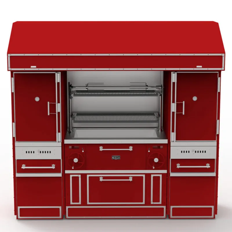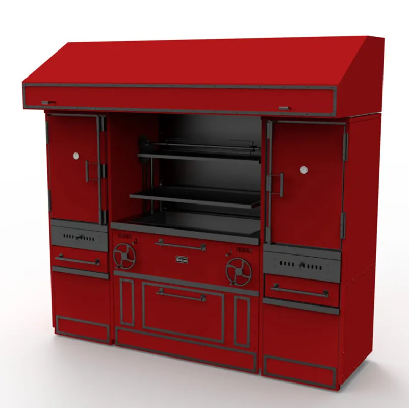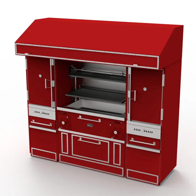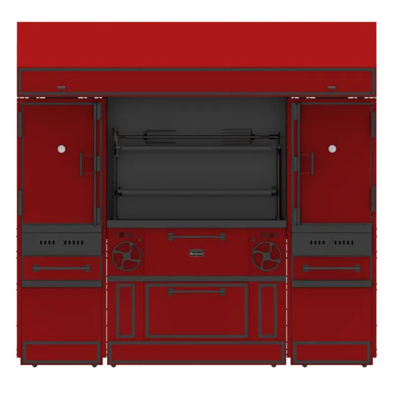 - Решётка-гриль: 1000×500 мм с механизмом подъёма над зоной очага до 350 мм.